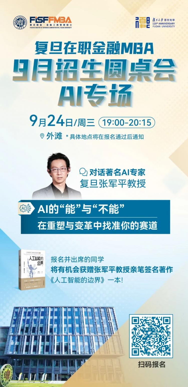 【活動報名】AI的“能”與“不能”——對話AI大V復(fù)旦張軍平教授丨FMBA