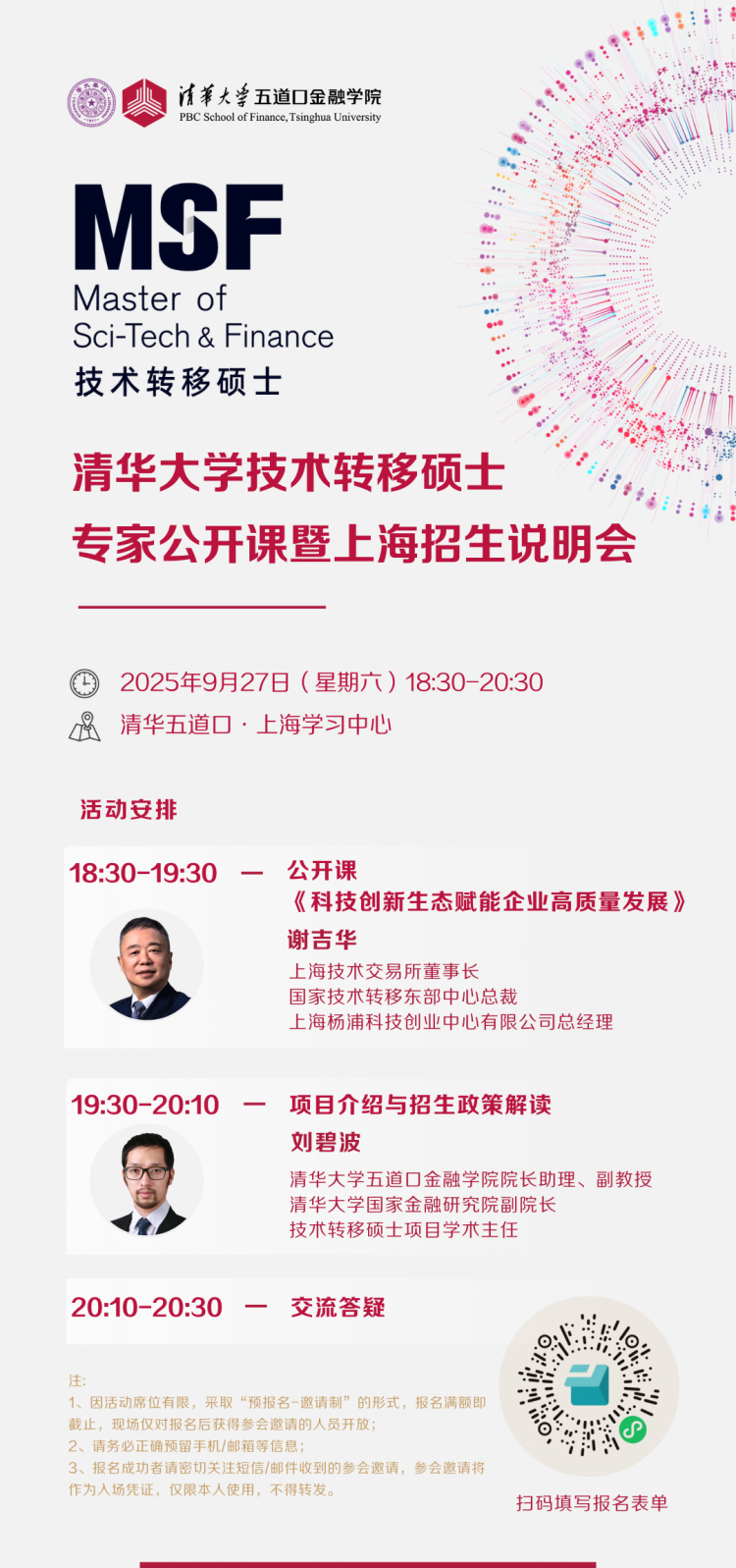 清華大學(xué)技術(shù)轉(zhuǎn)移碩士項(xiàng)目2026級上海招生說明會開啟報(bào)名