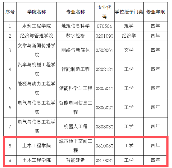2021年新增“城市地下空間工程”、“智能建造”兩個(gè)本科專業(yè)