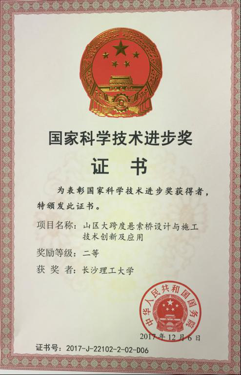 長沙理工大學(xué)參與的《山區(qū)大跨度懸索橋設(shè)計(jì)與施工技術(shù)創(chuàng)新及應(yīng)用》項(xiàng)目榮獲2017年度國家科學(xué)技術(shù)進(jìn)步獎(jiǎng)二等獎(jiǎng)