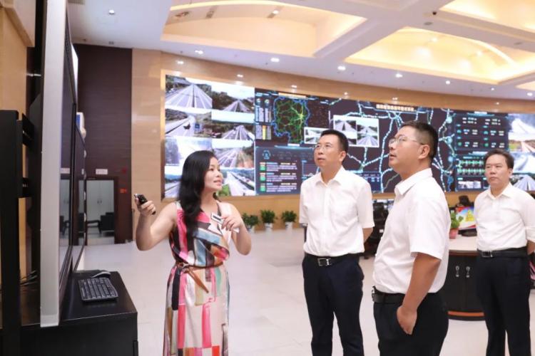 會(huì)前,在湖南高速集團(tuán)黨委書記、董事長馬捷等相關(guān)同志的陪同下,曹一家及學(xué)校相關(guān)人員前往湖南省高速公路路網(wǎng)監(jiān)測(cè)指揮中心監(jiān)控指揮大廳、中國高速公路交通廣播工作室、湖南高速公路展覽館進(jìn)行了走訪調(diào)研。