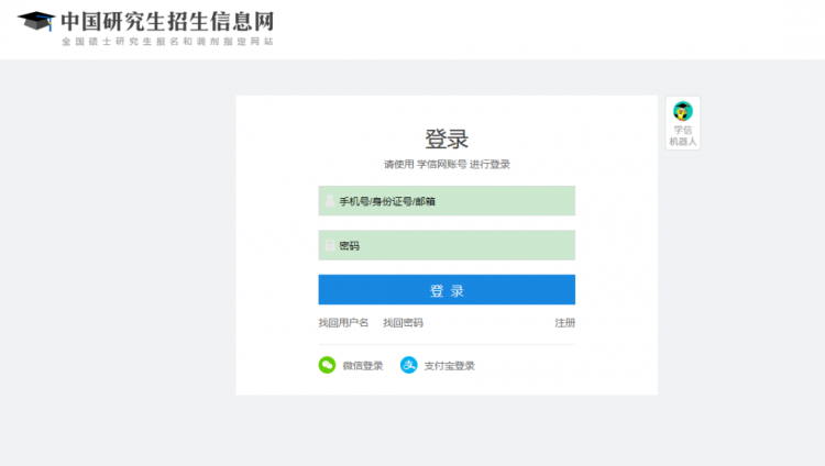 注:已有賬號(hào)的考生可直接登陸,沒有學(xué)信網(wǎng)賬號(hào)的同學(xué)請(qǐng)先注冊(cè)學(xué)信網(wǎng)賬號(hào)。