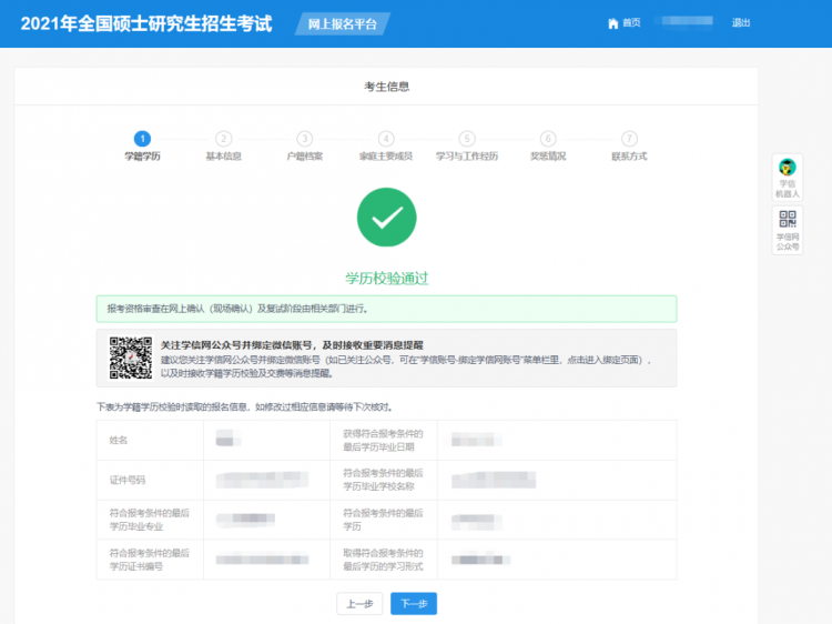 注:建議考生關(guān)注學(xué)信網(wǎng)公眾號(hào)并綁定微信賬號(hào)(如已關(guān)注公眾號(hào),可在“學(xué)信賬號(hào)-綁定學(xué)信網(wǎng)賬號(hào)”菜單欄里,點(diǎn)擊進(jìn)入綁定頁面),以及時(shí)接收學(xué)籍學(xué)歷校驗(yàn)及交費(fèi)等消息提醒。