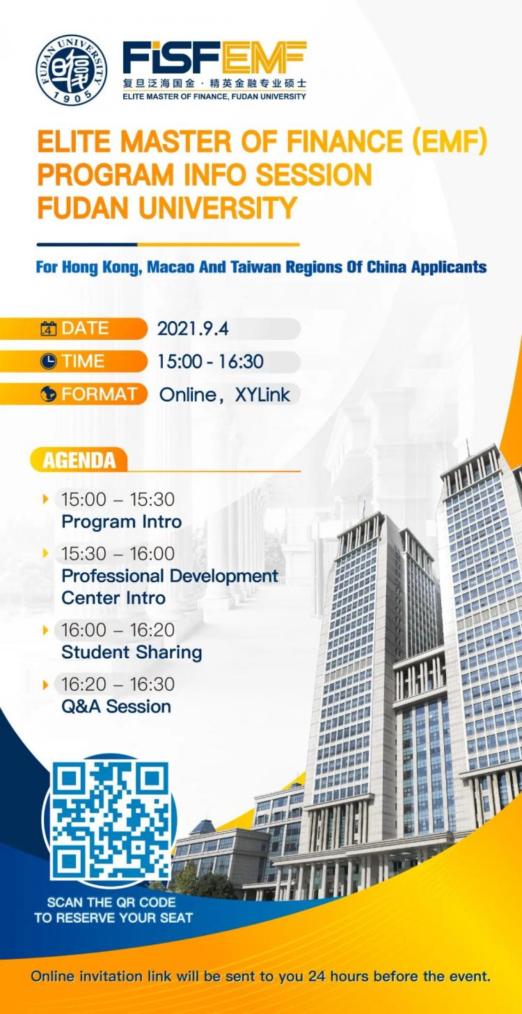 【9月4日】復(fù)旦泛海國金EMF項目港澳臺地區(qū)招生線上宣講會來啦 | EMF