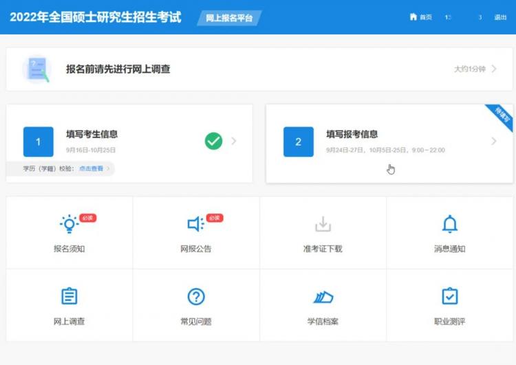 研招統(tǒng)考網(wǎng)報(bào)共分為“填寫考生信息”和“填寫報(bào)考信息”兩部分。