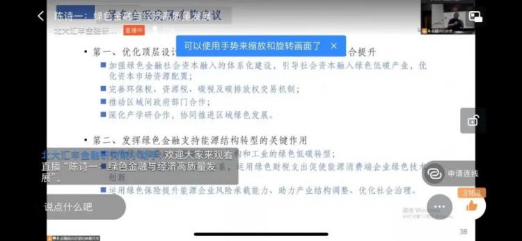 本期金融前沿講堂,陳詩(shī)一教授在分析我國(guó)綠色金融發(fā)展現(xiàn)狀的基礎(chǔ)上,以長(zhǎng)三角綠色金融與一體化發(fā)展為例,通過(guò)制度政策、市場(chǎng)活力、保障措施幾個(gè)維度來(lái)構(gòu)建長(zhǎng)三角城市群綠色金融發(fā)展評(píng)估指數(shù),對(duì)綠色金融如何高效助推長(zhǎng)三角生態(tài)綠色一體化高質(zhì)量發(fā)展進(jìn)行闡釋。本次講座采取“線下講座+線上直播”的形式,線下120余人參與,線上882人次觀看,收獲3200次點(diǎn)贊。