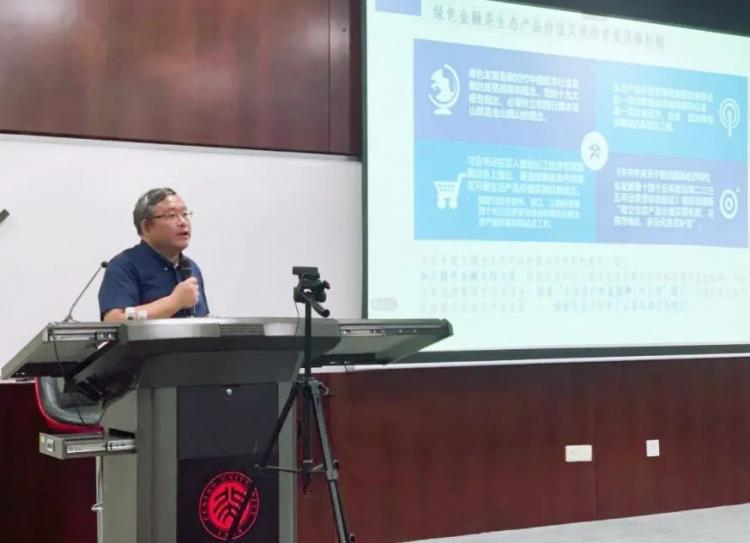 隨后,陳詩(shī)一教授從政策體系、市場(chǎng)體系、地方實(shí)踐和國(guó)際合作等方面介紹了我國(guó)綠色金融的發(fā)展現(xiàn)狀,并著重將衢州、湖州等城市作為案例進(jìn)行分析。例如,湖州將“金融+”和“生態(tài)+”深度融合,推出了“環(huán)境污染責(zé)任保險(xiǎn)” “園區(qū)貸”等多種綠色金融產(chǎn)品;衢州市重點(diǎn)打造綠色金融信用信息共享平臺(tái),支持生態(tài)產(chǎn)品價(jià)值實(shí)現(xiàn)。