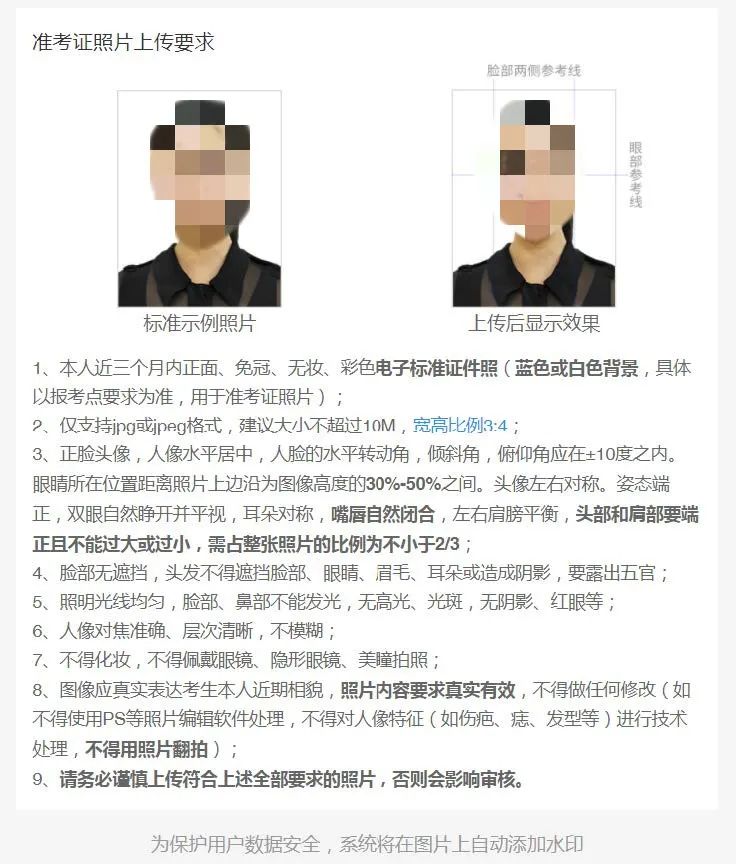 上傳考生本人近期正面免冠彩色證件照片,照片要求如下: