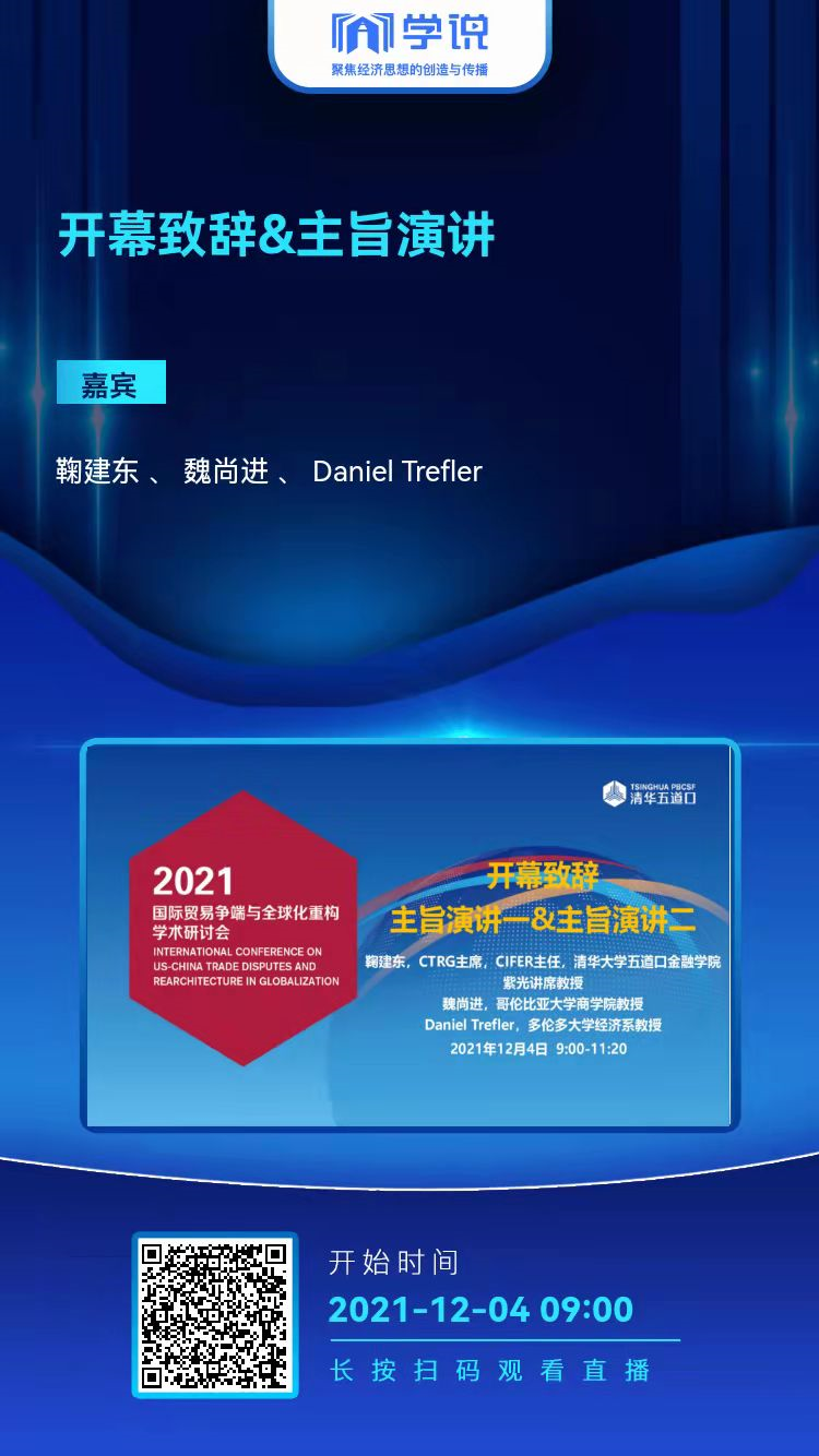 2021年12月4日,由清華大學五道口金融學院國家金融研究院國際金融與經(jīng)濟研究中心(CIFER)主辦的“2021國際貿易爭端與全球化重構學術研討會(2021 International Confere...