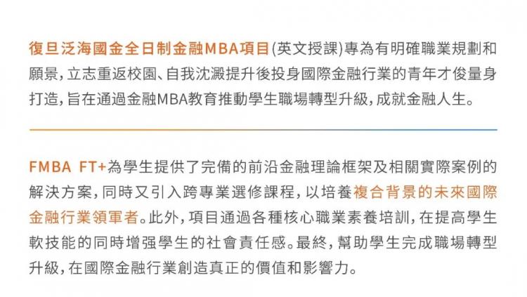 復(fù)旦大學(xué)全日制金融MBA2023級(jí)港澳臺(tái)地區(qū)火熱招生中 | FMBA