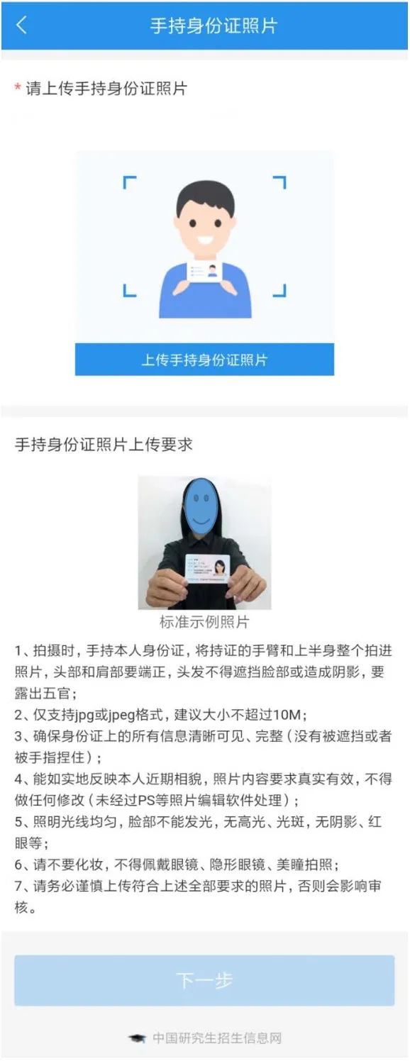 3.上傳考生本人手持身份證照片,務(wù)必按系統(tǒng)中的要求上傳。