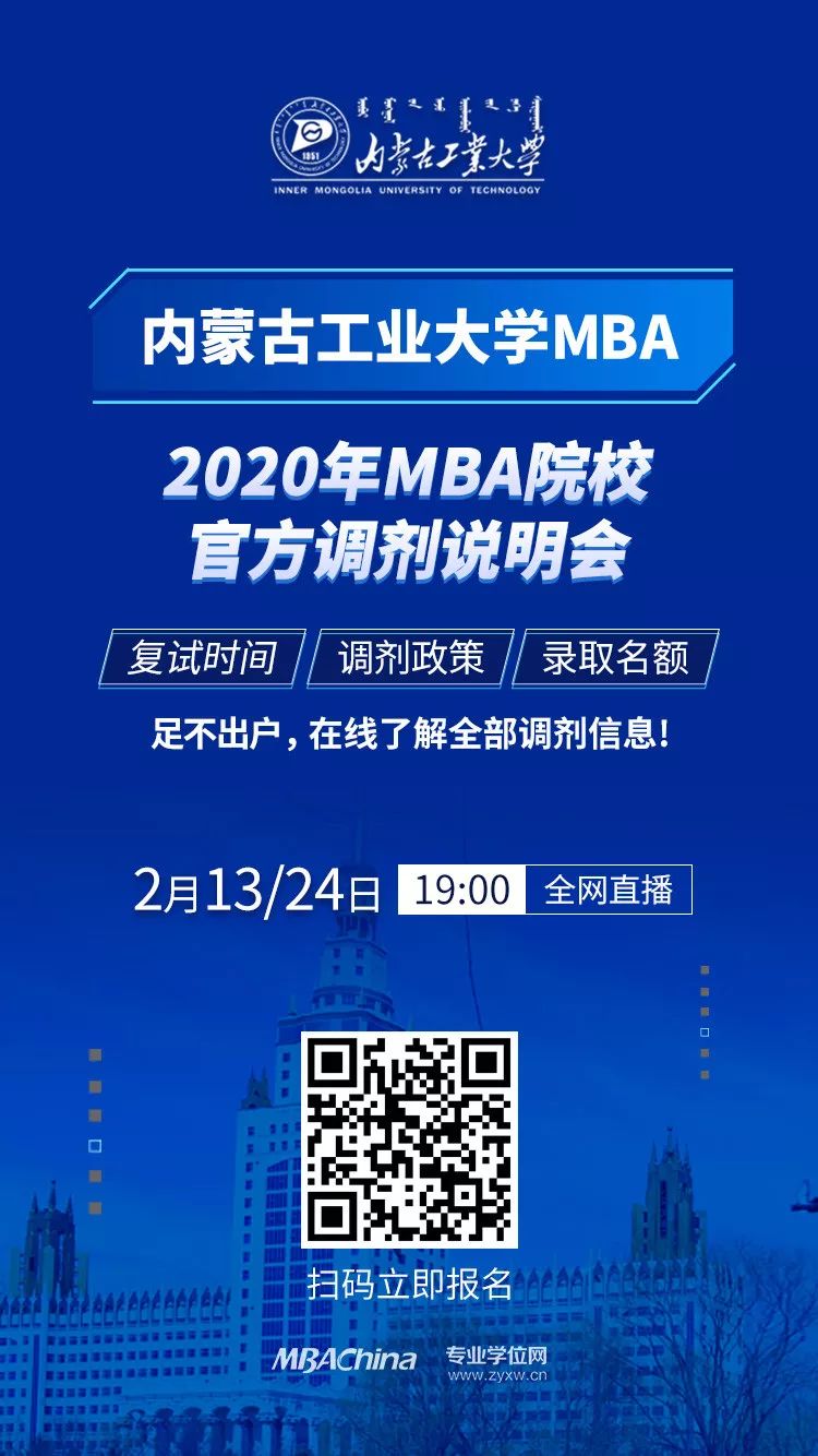 預(yù)告|內(nèi)蒙古工業(yè)大學(xué)MBA第二場(chǎng)官方調(diào)劑說明會(huì)將于今日19點(diǎn)準(zhǔn)時(shí)進(jìn)行