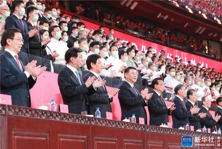 6月28日晚,慶祝中國共產(chǎn)黨成立100周年文藝演出《偉大征程》在國家體育場(chǎng)盛大舉行。習(xí)近平、李克強(qiáng)、栗戰(zhàn)書、汪洋、王滬寧、趙樂際、韓正、王岐山等黨和國家領(lǐng)導(dǎo)人,同約2萬名觀眾一起觀看演出。新華社記者 鞠鵬 攝篳路藍(lán)縷創(chuàng)偉業(yè),初心不忘再起航。慶祝中國共產(chǎn)黨成立100周年文藝演出《偉大征程》28日晚在國家體育場(chǎng)盛大舉行。習(xí)近平、李克強(qiáng)、栗戰(zhàn)書、汪洋、王滬寧、趙樂際、韓正、王岐山等黨和國家領(lǐng)導(dǎo)人,同約2萬名觀眾一起觀看演出,共同回顧中國共產(chǎn)黨成立100年來波瀾壯闊的光輝歷程,共同祝福偉大的黨帶領(lǐng)中國人民邁進(jìn)新征程、奮進(jìn)新時(shí)代。