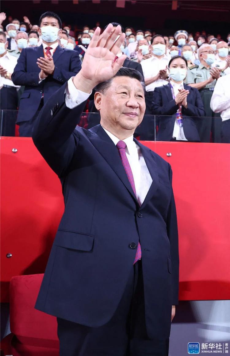 6月28日晚,慶祝中國共產(chǎn)黨成立100周年文藝演出《偉大征程》在國家體育場(chǎng)盛大舉行。習(xí)近平、李克強(qiáng)、栗戰(zhàn)書、汪洋、王滬寧、趙樂際、韓正、王岐山等黨和國家領(lǐng)導(dǎo)人,同約2萬名觀眾一起觀看演出。新華社記者 丁海濤 攝19時(shí)57分許,在歡快的樂曲聲中,習(xí)近平等領(lǐng)導(dǎo)同志走上主席臺(tái),向大家揮手致意,全場(chǎng)響起熱烈的掌聲和歡呼聲。