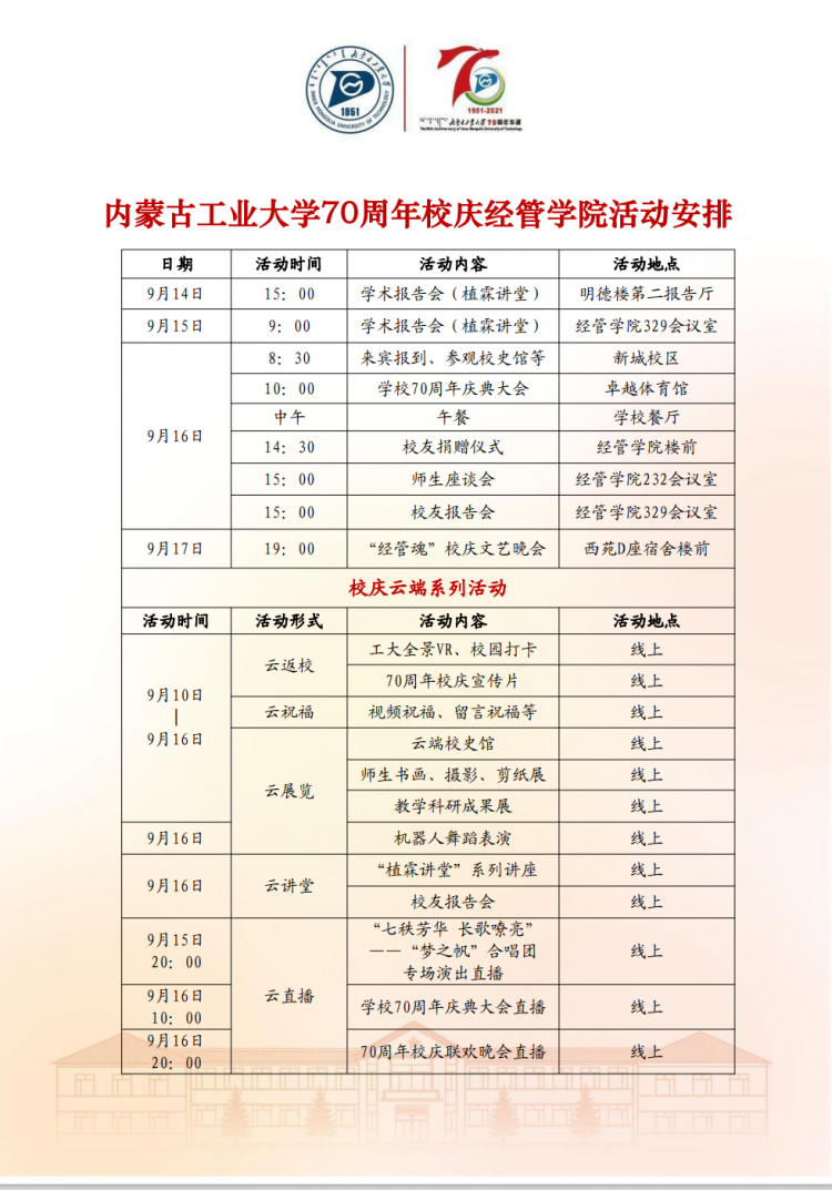 內(nèi)蒙古工業(yè)大學(xué)70周年校慶經(jīng)管學(xué)院活動安排