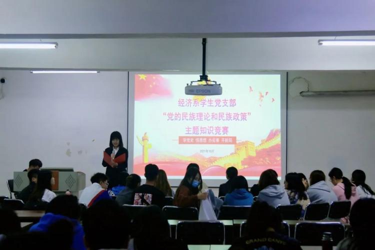 10月14日,經(jīng)濟(jì)系學(xué)生黨支部于主樓429教室開展“黨的民族理論和民族政策”主題知識競賽,支部全體成員參加。