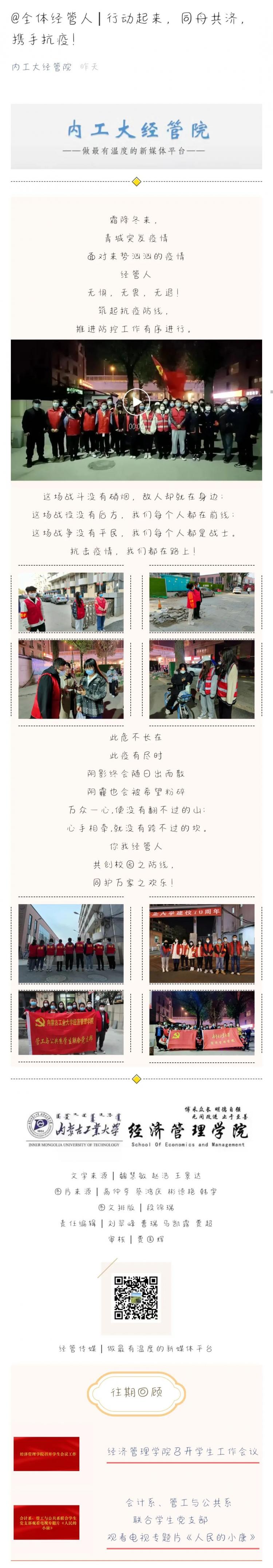 ★ 10月23日,呼和浩特市突發(fā)疫情。頓如一道驚雷,打破校園的寧靜。連日來,經(jīng)濟管理學(xué)院迅速采取一系列舉措不斷開展疫情防控工作。疫情就是命令,防控就是責(zé)任,經(jīng)管上下立即行動,一場突如其來的疫情防控阻擊...
