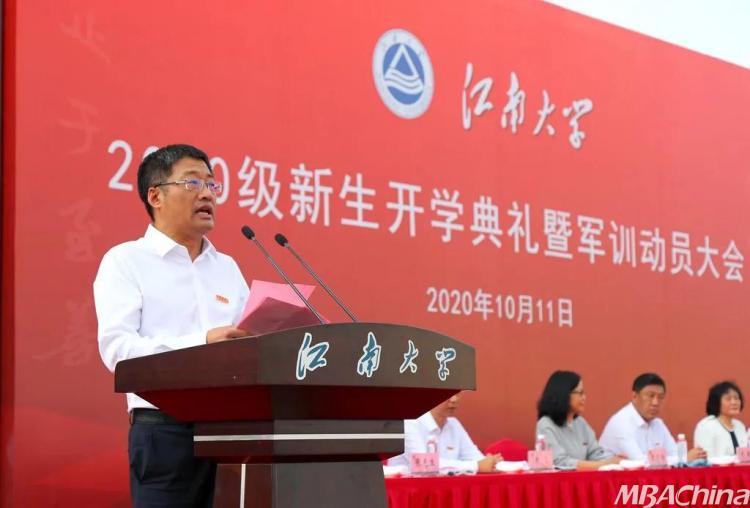 大家下午好!今天,我們相聚于此,隆重舉行2020級(jí)新生開學(xué)典禮暨軍訓(xùn)動(dòng)員大會(huì)。首先,請(qǐng)?jiān)试S我代表江南大學(xué)3萬多講師生和全球18萬校友,對(duì)你們加入江南大學(xué)表示熱烈的歡迎!感謝你們?cè)谧蠲赖哪耆A,把人生夢(mèng)想托付給江南。你們是江南大學(xué)最新鮮的血液、也是最蓬勃的力量,你們中年齡最小的只有16歲,我們?yōu)橛行艺惺盏侥銈冞@群有才華、有追求、有活力的江南人而自豪。得天下英才而育之,是江南的榮幸;育天下英才而成之,更是江南的責(zé)任。