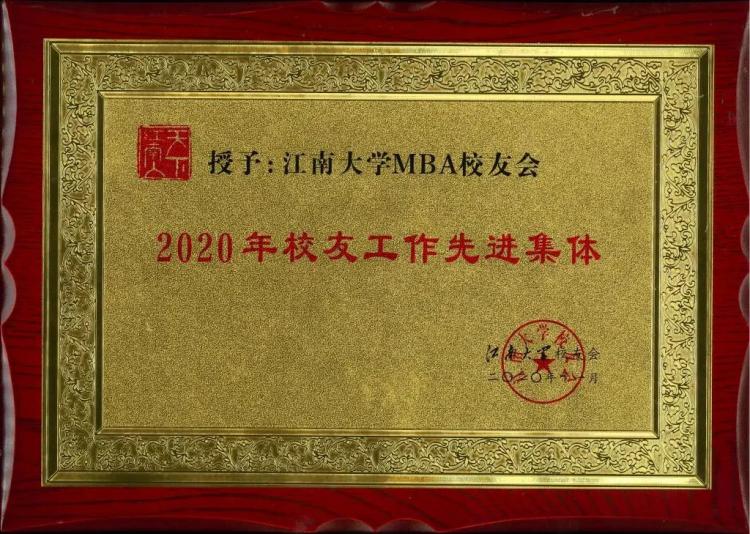 MBA校友會榮獲江南大學(xué)2020年校友工作先進(jìn)集體