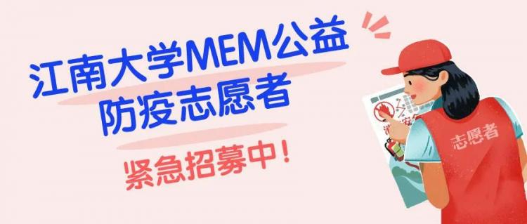 親愛的伙伴們、熱心青年們! 勇?lián)啻菏姑?,彰顯青春風(fēng)采 積極響應(yīng)無錫團(tuán)市委行動令號召 共同筑起全市青年戰(zhàn)“疫”防線 江南大學(xué)MEM公益防疫志愿者 緊急招募中! 1、招募要求 居住在無錫市內(nèi)的江...