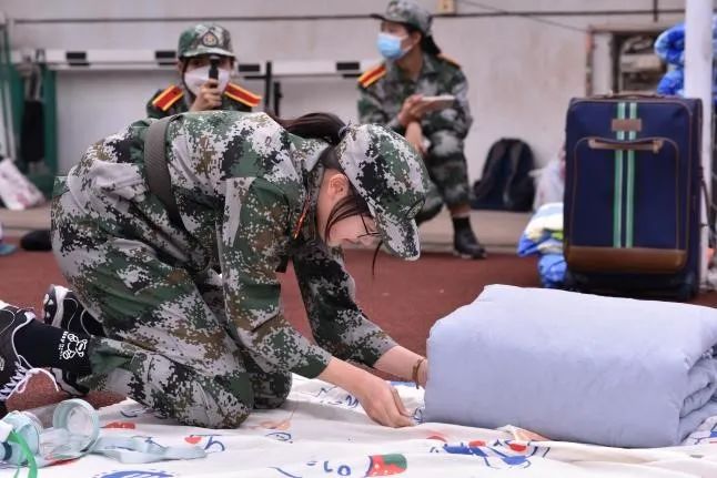 我們商院“小綠人”也不甘示弱,紛紛疊出整齊的“豆腐塊”。