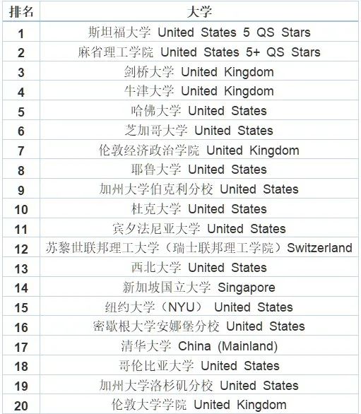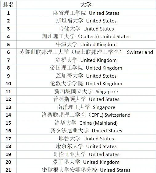 THE2021世界大學(xué)學(xué)科排名前二十: