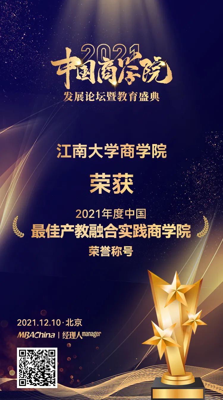 喜報 | 江南大學(xué)商學(xué)院MBA項(xiàng)目榮獲2021“中國商學(xué)院”多項(xiàng)獎項(xiàng)