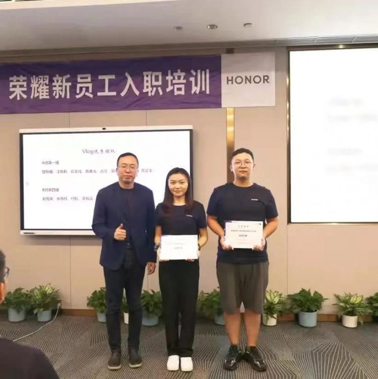 入職培訓(xùn)時,接受深圳榮耀CEO頒獎