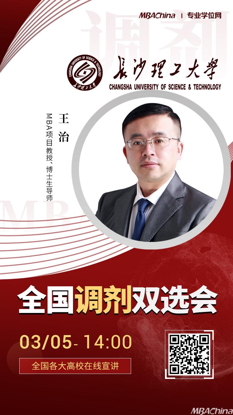 掌握先機,決戰(zhàn)調(diào)劑。為了方便廣大考生更好地了解2021年MBA調(diào)劑信息,也為了進一步服務(wù)于需要調(diào)劑的考生,MBAChina、專業(yè)學(xué)位網(wǎng)攜手對長沙理工大學(xué)舉辦“2021年全國管理類專業(yè)調(diào)劑雙選會”,并于2021年3月5日16:30--16:50在線直播。