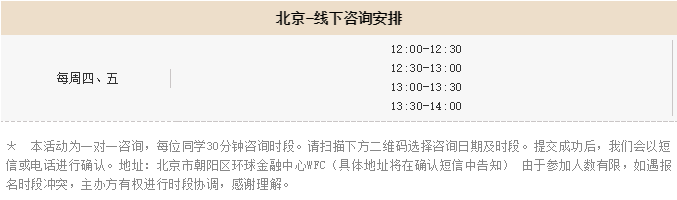 *該活動為線下咨詢,每場活動會限定人數(shù),報名額滿后即調(diào)整至后期場次。項目組將對所有報名信息做審核,通過審核之后,入場方式將以郵件/短信形式告知同學。掃描下方二維碼報名。