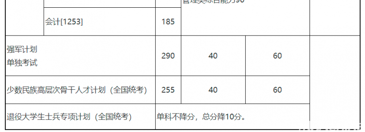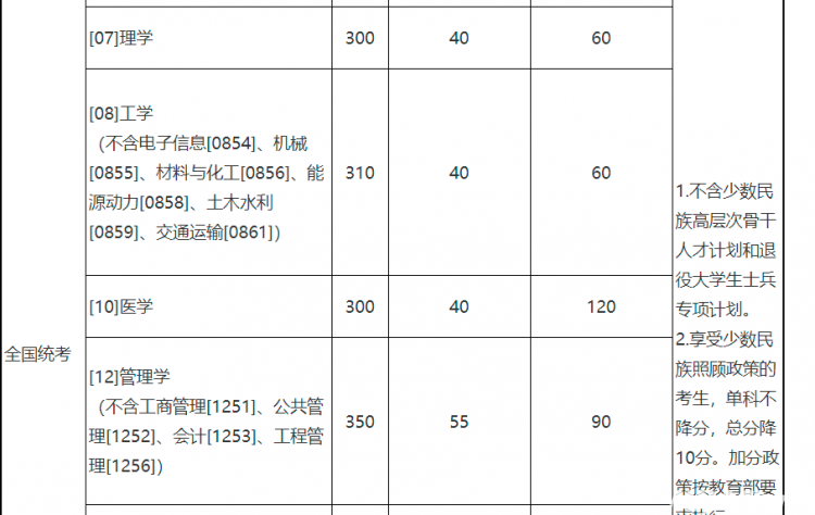 *享受加分政策考生:參加“大學(xué)生志愿服務(wù)西部計(jì)劃”“三支一扶計(jì)劃”“農(nóng)村義務(wù)教育階段學(xué)校教師特設(shè)崗位計(jì)劃”“赴外漢語(yǔ)教師志愿者”等項(xiàng)目服務(wù)期滿、考核合格的考生,3年內(nèi)參加全國(guó)碩士研究生招生考試的,初試總分加10分,同等條件下優(yōu)先錄取。