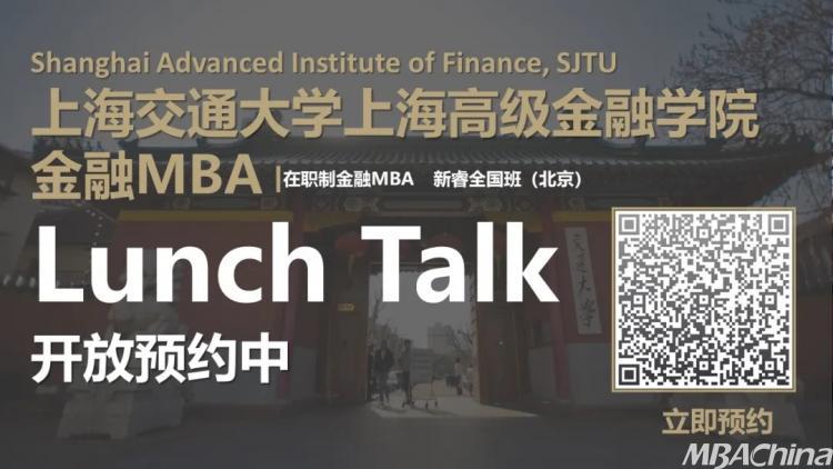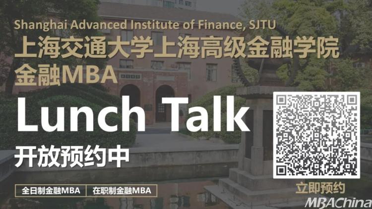 如果你想更加深入了解SAIF MBA,如果你想聽聽更多關(guān)于你的建議,每周開放的Coffee Chat&LunchTalk,SAIF MBA招生老師將為你全面解析金融MBA招生政策、培養(yǎng)體系和師資,為你在申請(qǐng)中所遇到的問題答疑解惑。