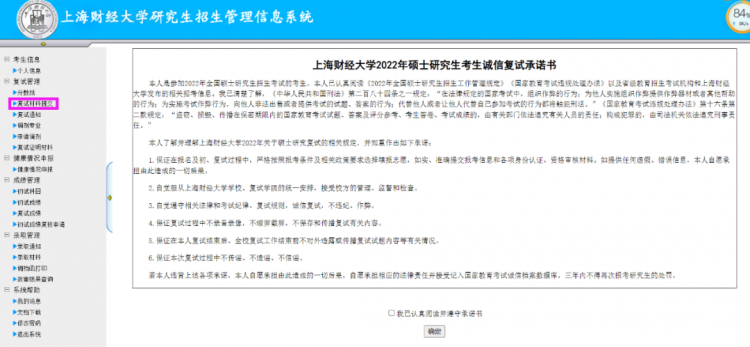 獲得復(fù)試資格(達(dá)到我校工商管理碩士復(fù)試分?jǐn)?shù)線,包括參加過預(yù)面試)的考生,應(yīng)簽署《上海財(cái)經(jīng)大學(xué)2022年碩士研究生考生誠信復(fù)試承諾書》(如下圖所示),嚴(yán)格遵守復(fù)試考場規(guī)則,獨(dú)立誠信應(yīng)考。在復(fù)試過程中不得拍照、錄音、錄像、直播、錄屏、投屏。在復(fù)試期間及招生學(xué)院(所)復(fù)試工作全部結(jié)束前,不得以任何形式透露傳播試題內(nèi)容等有關(guān)情況,否則一經(jīng)查實(shí)按作弊論處。對違反招生考試管理規(guī)定和考場紀(jì)律,影響考試公平、公正的考生,按有關(guān)規(guī)定嚴(yán)肅處理;構(gòu)成違法犯罪的,由司法機(jī)關(guān)依法追究法律責(zé)任。
