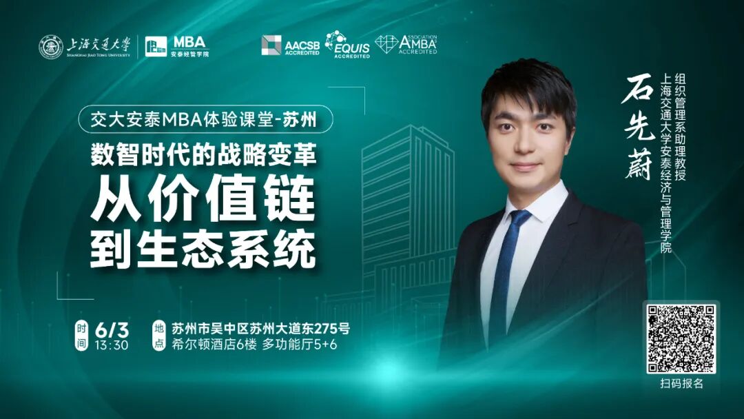蘇州專場體驗課堂!| 舊王者因何隕落,新勢力因何勃興?交大安泰青年教授6月3日蒞臨蘇州體驗課堂,解析變革時代的生態(tài)戰(zhàn)略