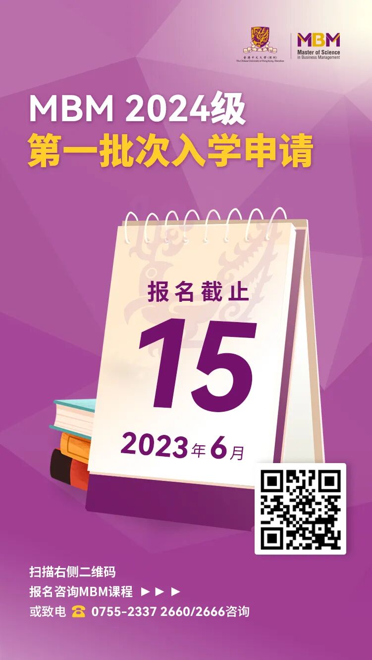 倒計時 |香港中文大學(xué)(深圳)管理學(xué)理學(xué)碩士MBM2024級第一批次入學(xué)申請將于6月15日截止