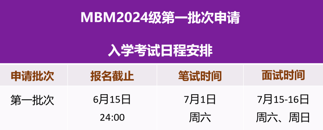 MBM2024級第一批次申請截止時間為6月15日24:00,歡迎準(zhǔn)備報讀的同學(xué)盡早提交申請早日獲得考試機(jī)會!