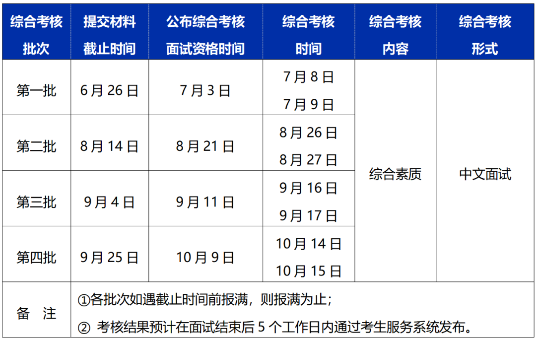 答:綜合考核共分四個批次,申請者僅可選擇其中一期進行申請。
