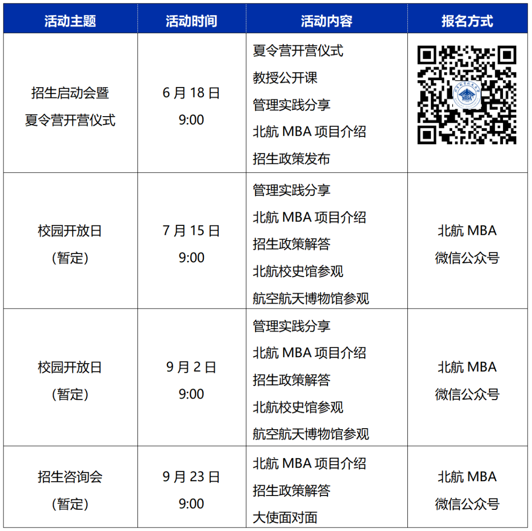 (具體時間和報名方式活動前在北航MBA官方微信號公布)。