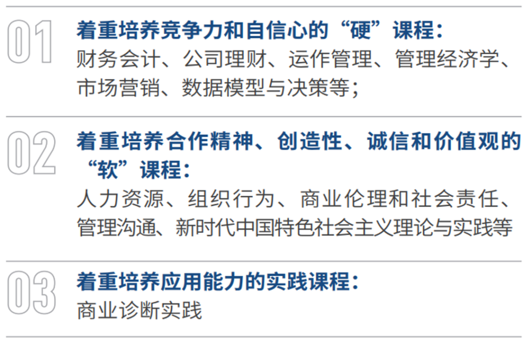 基于 MBA3.0 課程體系設(shè)計(jì),從素質(zhì)品格、管理理念、戰(zhàn)略視野、領(lǐng)導(dǎo)能力、整合實(shí)踐、前沿科技等層面進(jìn)行系統(tǒng)性改革和結(jié)構(gòu)性優(yōu)化全面升級!