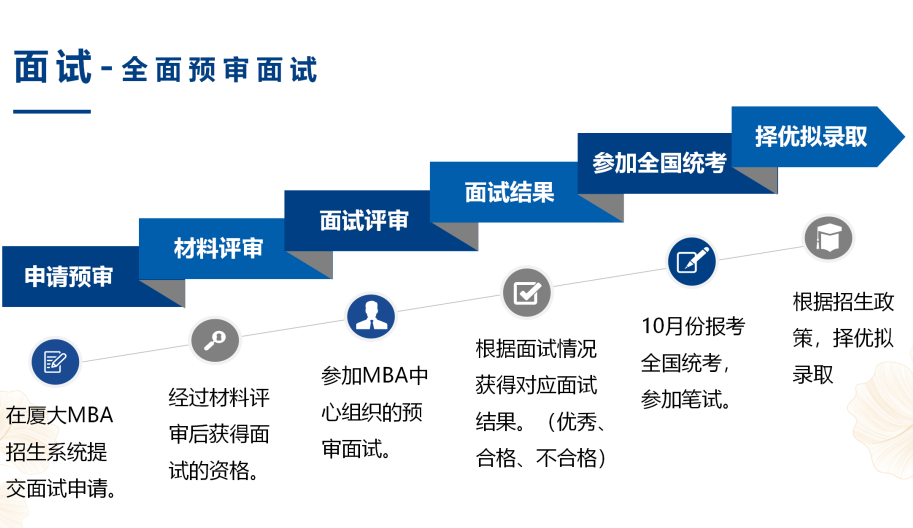 即所有廈大MBA項(xiàng)目的申請人均需按要求完成預(yù)審面試。