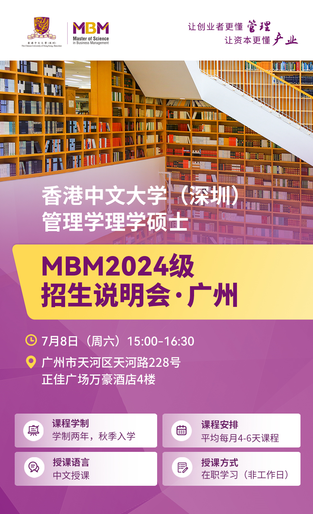 立即預(yù)約 | 7月8日港中大(深圳)管理學(xué)理學(xué)碩士項(xiàng)目2024級廣州招生說明會(huì)