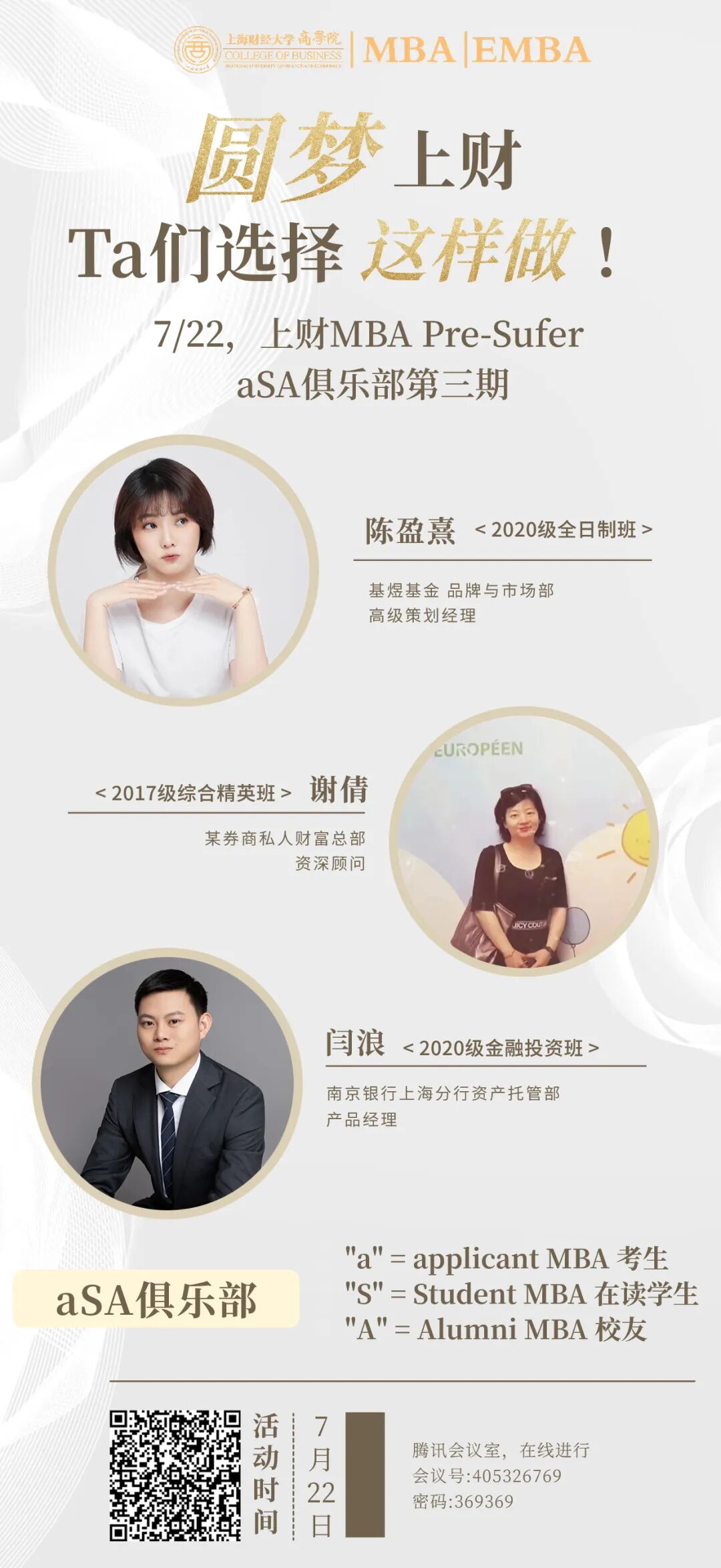 7.22考生活動(dòng)預(yù)告丨圓夢(mèng)上財(cái)?他們選擇這樣做!Pre-Sufer aSA俱樂部【圓夢(mèng)使者專場(chǎng)】
