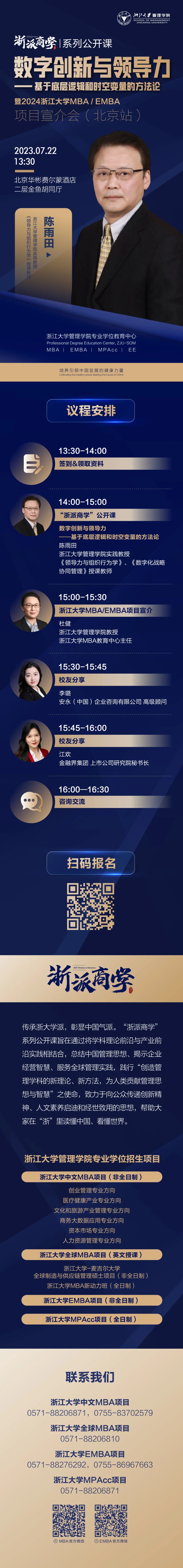 7月22日,浙江大學(xué)“浙派商學(xué)”系列公開課與您相約北京!
