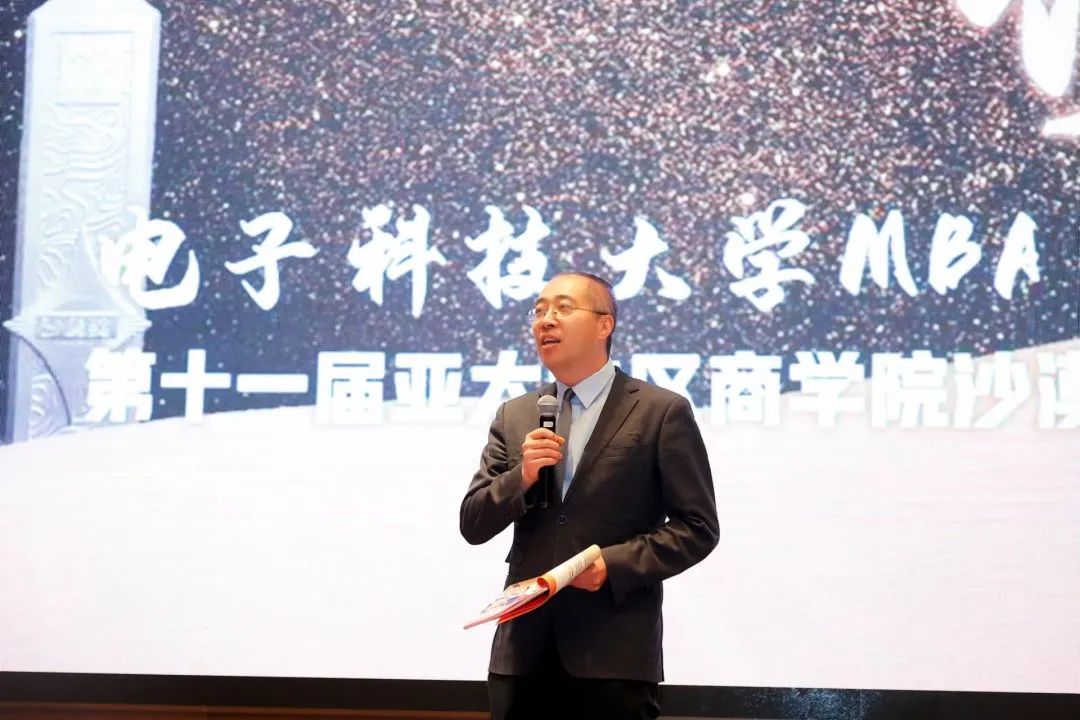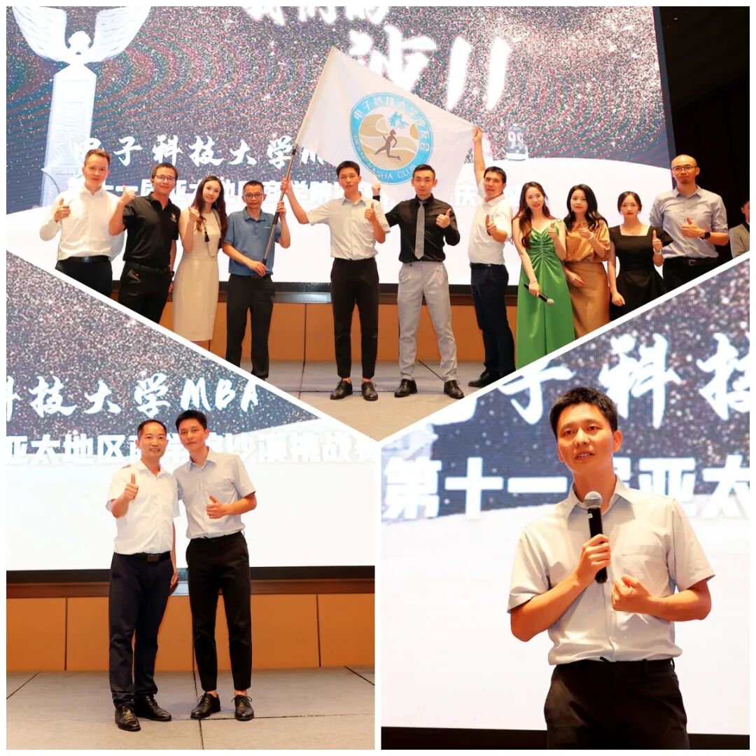 隨著電子科大“科技創(chuàng)新”MBA項目的視頻介紹,電子科技大學(xué)MBA教育中心主任陳德富副研究員與觀眾們分享了電子科大MBA項目在電子信息、區(qū)塊鏈、大數(shù)據(jù)、人工智能等方面的學(xué)科優(yōu)勢和資源優(yōu)勢,同時回憶了歷屆參加亞沙慶功宴的情景,并感慨當晚的規(guī)模與檔次已然不可同日而語,并表達了對電子科大沙賽一直以來給予支持的贊助商們的感謝,最后亦一如既往地對電子科大亞沙團隊與其奮斗成果表達了肯定、支持、期望,并提出了更高的要求。