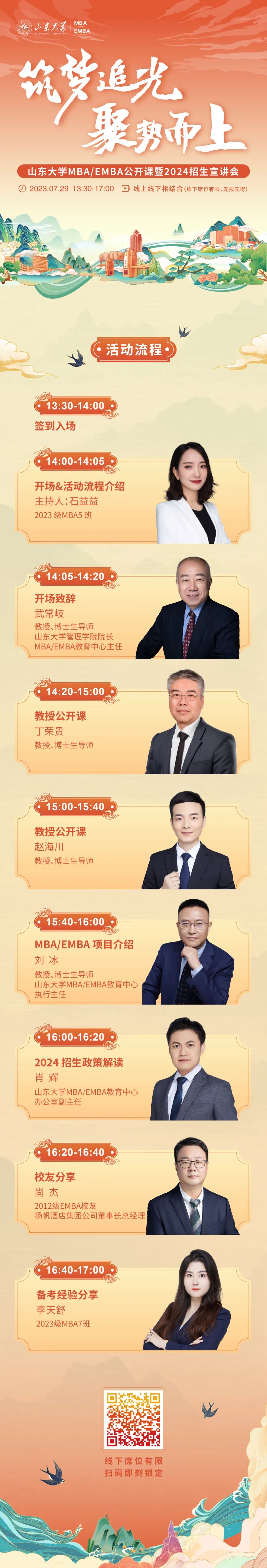 嘉賓陣容出爐丨7月29日山東大學(xué)MBA/EMBA等你赴約!