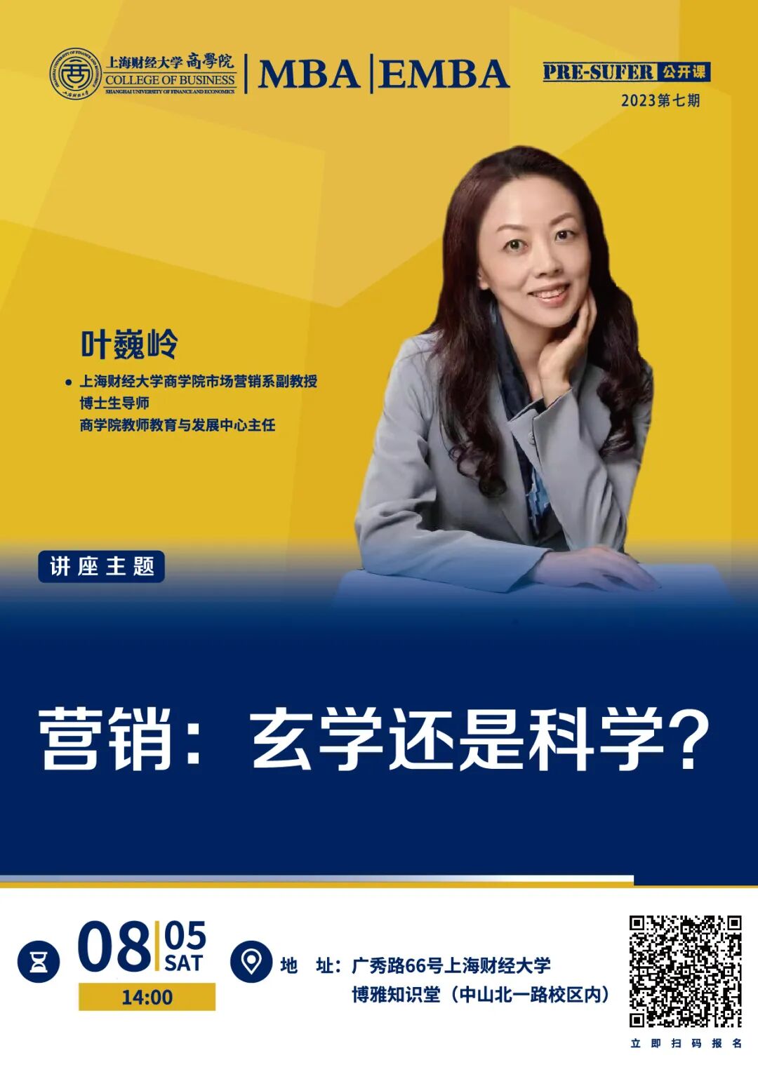 8月5日,上財(cái)MBA將舉辦本年度第七期Pre-Sufer公開課暨招生宣講會(huì)。本次活動(dòng)為各位考生、校友提供了一個(gè)絕佳的溝通平臺(tái)。屆時(shí)將由上海財(cái)經(jīng)大學(xué)商學(xué)院市場營銷系副教授,博士生導(dǎo)師,商學(xué)院教師教育與發(fā)展中心主任葉巍嶺老師帶來《營銷:玄學(xué)還是科學(xué)?》公開課、由招生辦老師帶來最新的2024年入學(xué)MBA項(xiàng)目介紹及招生政策解析,詳細(xì)解答報(bào)考過程中遇到的任何疑問。