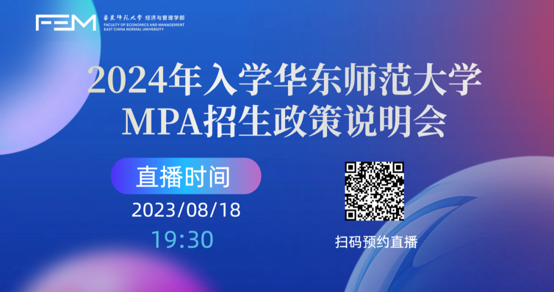 直播預(yù)告 | 8月18日,2024年入學(xué)華東師范大學(xué)MPA招生政策說明會即將線上開啟!