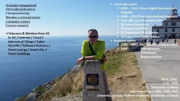 初識(shí)奧盧,走入教室的第一堂課,我們有幸與芬蘭國(guó)際商務(wù)與5G/6G通訊技術(shù)的知名學(xué)者Dr. Petri相遇。他以課程的形式,帶我們探討5G/6G技術(shù)及數(shù)字服務(wù)的未來(lái),為我們展開(kāi)了奧盧大學(xué)暑期實(shí)踐課程的序幕。