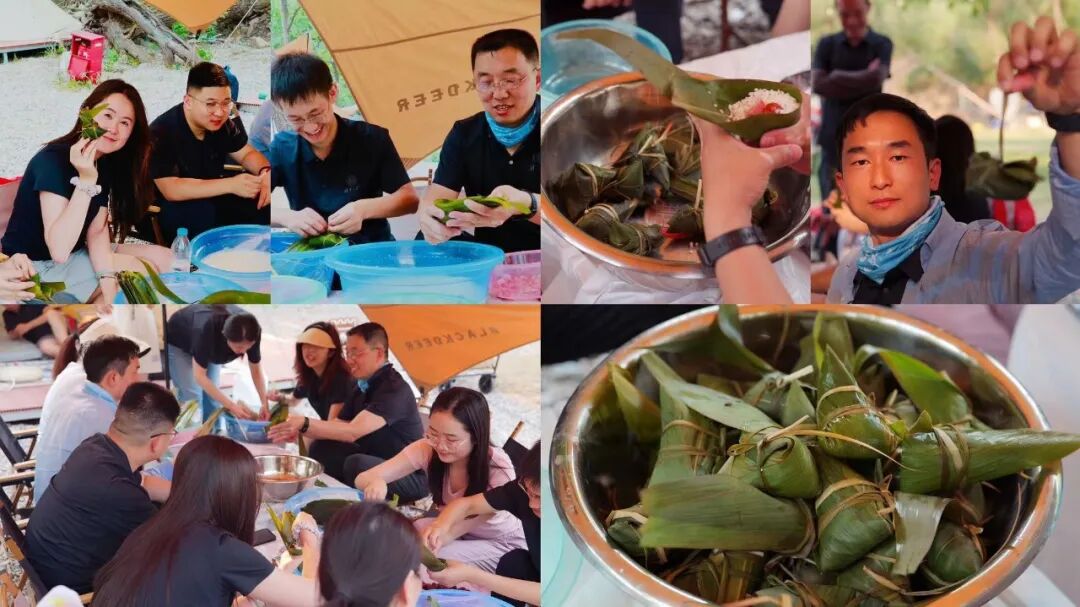 到達營地帳篷下,大家聚在一起休憩暢聊,好不愜意。同時也臨近端午,活動籌備組為大家準備了驚喜的包粽子教學環(huán)節(jié),甚至將南北方甜咸口味都考慮周到。歡聲笑語中,大家進一步加深了解,收獲了歡樂和友誼。