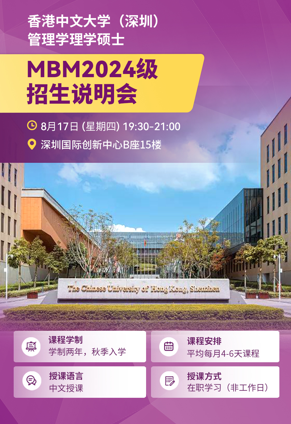 報(bào)名預(yù)約 | 8月17日港中大(深圳)管理學(xué)理學(xué)碩士項(xiàng)目2024級(jí)招生說(shuō)明會(huì)